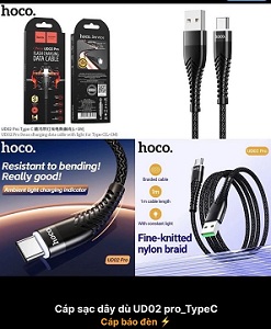 Cáp Sạc Dây Dù Hoco UD02PRO, CÓ BÁO ĐÈN - DÀI 1M - 3A