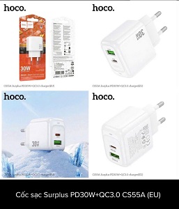 CÓC SẠC HOCO CS55A - 2 CỔNG SẠC USB + TYPEC, PD20W + QC3.0