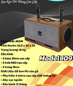 LOA SOUNDBOX PU109 KÈM 2 MIC KARAOKE KHÔNG DÂY