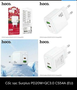CÓC SẠC HOCO CS54A - 2 CỔNG SẠC USB + TYPEC, PD20W + QC3.0